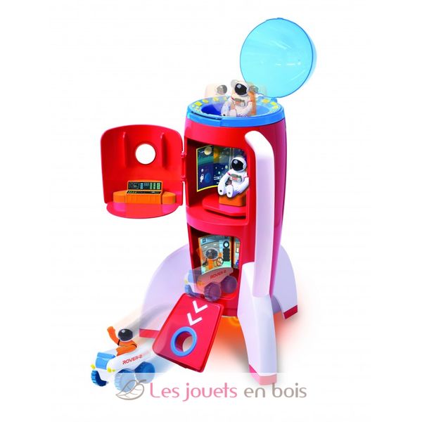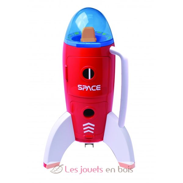 Appuie sur le bouton pour déclencher le compte à rebours et allumer la fusée pour un décollage imminent (effets sons et lumières).