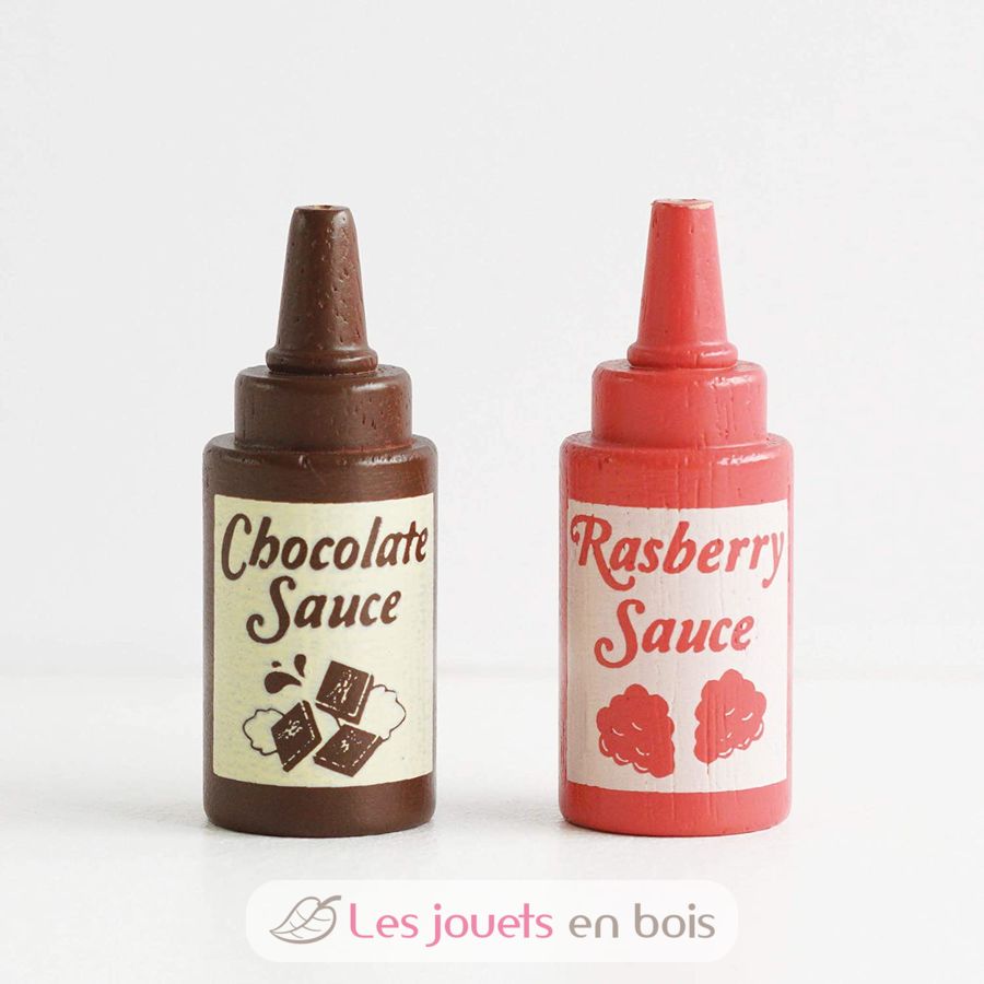 Les glaces de Carlo est un joli stand de glaces en bois colorées et peintes avec soin. Le stand en bois de glaces de Carlo comprend: un joli présentoir, 3 crèmes glacées en cornets ou en pots avec décors interchangeables, 2 bouteilles de nappage (chocolat et framboise) et une cuillère. Complément idéal pour les marchandes, les cuisines et pour agrémenter la petite table du goûter.