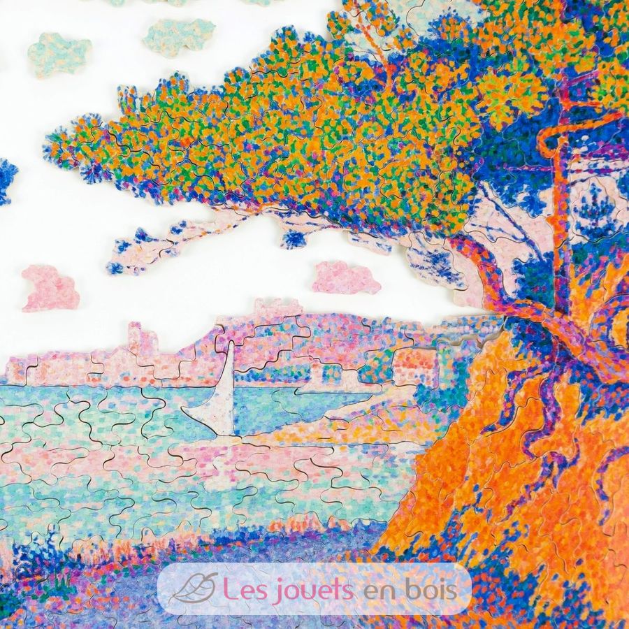 Paul Signac, figure du néo-impressionnisme, utilise la technique du pointillisme pour faire vibrer la lumière et la couleur. Peint en 1896, ce tableau rend hommage à la beauté éclatante de la Méditerranée. En assemblant ce puzzle, vous prendrez plaisir à repérer les subtiles variations de bleu et de rose qui structurent le ciel et la mer.