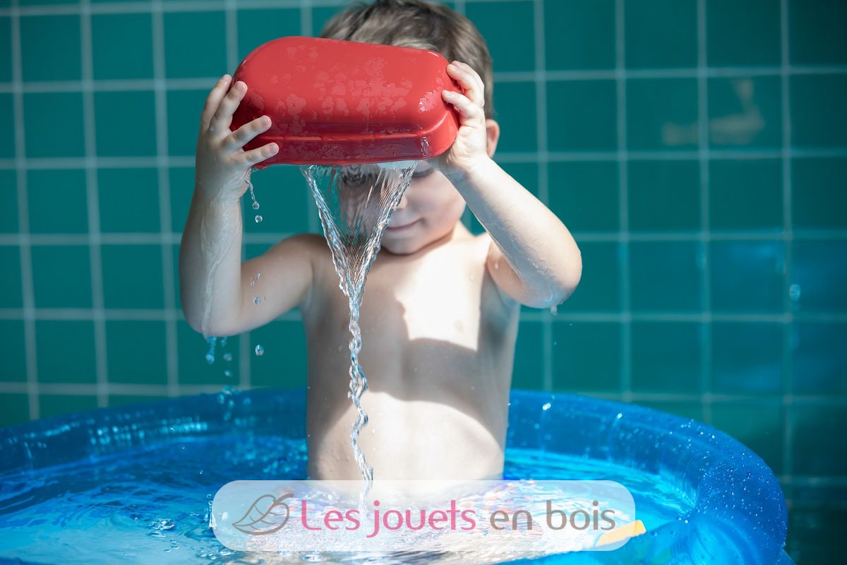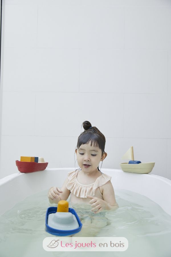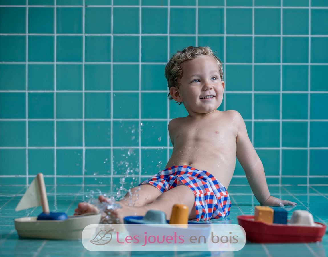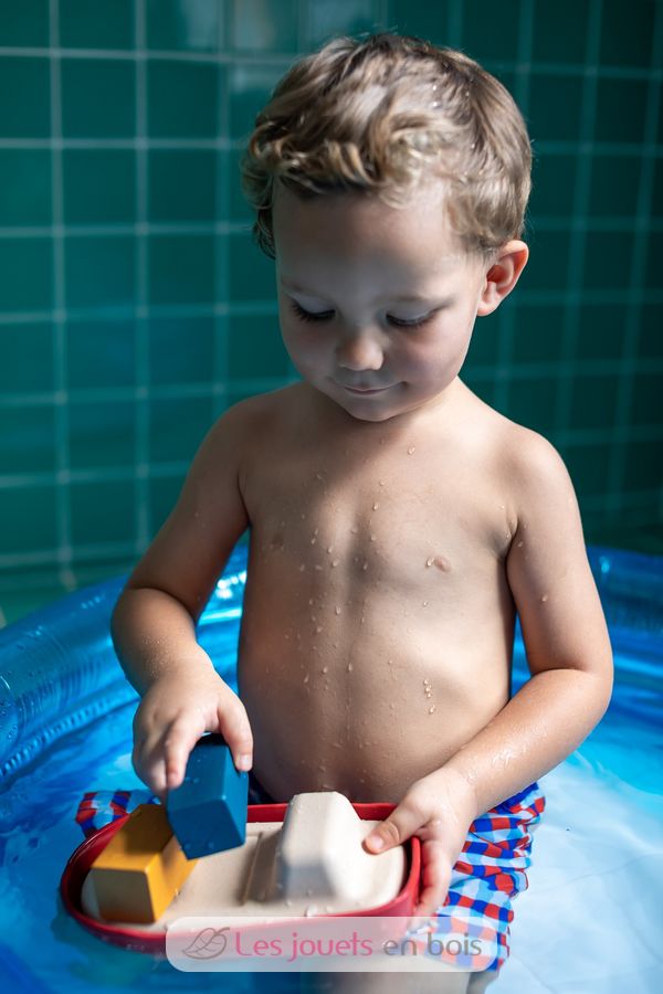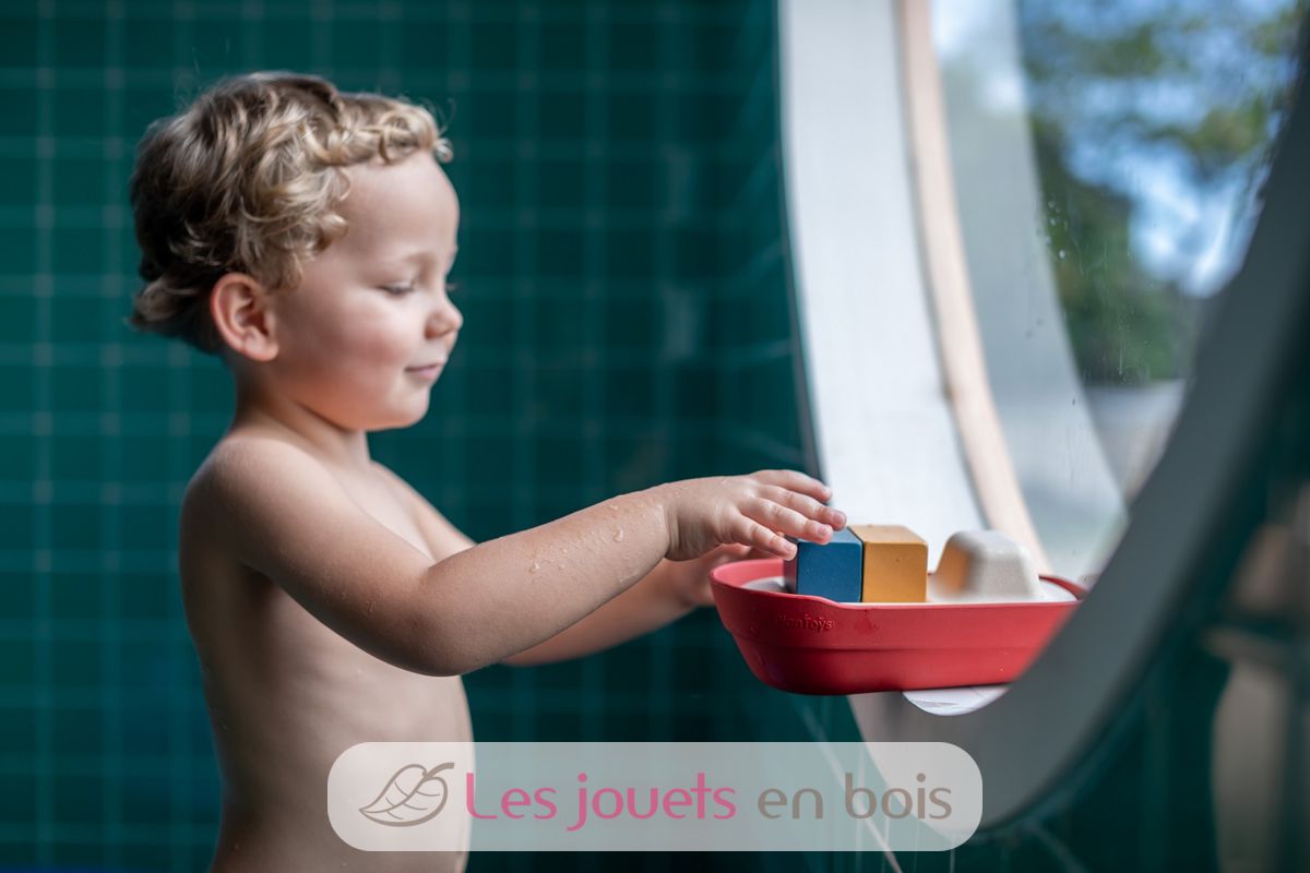Grand bateau modulable rouge 21 cm, un jouet de bain éco-responsable de la marque Plan Toys. Référence PT5806.