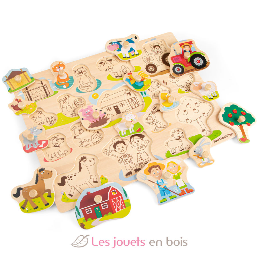 Découvrez la ferme et rencontrez les animaux qui y vivent avec ce puzzle en bois sur le thème de la ferme.