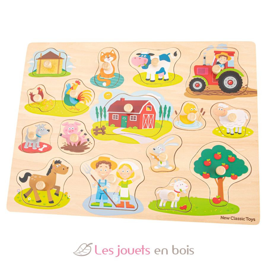 Grand puzzle Ferme 16 pcs, un puzzle en bois premier âge de la marque New Classic Toys. Référence 10440.