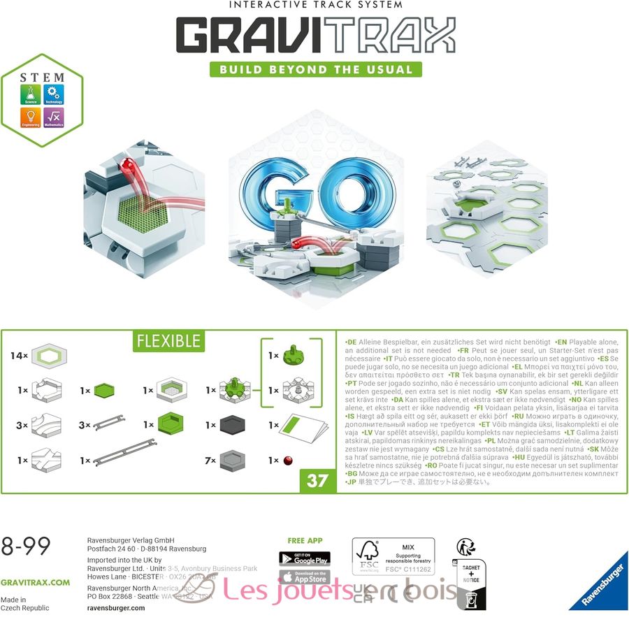 Le coffret GraviTrax GO Flexible est idéal pour les débutants qui souhaitent se familiariser avec l'univers GraviTrax.