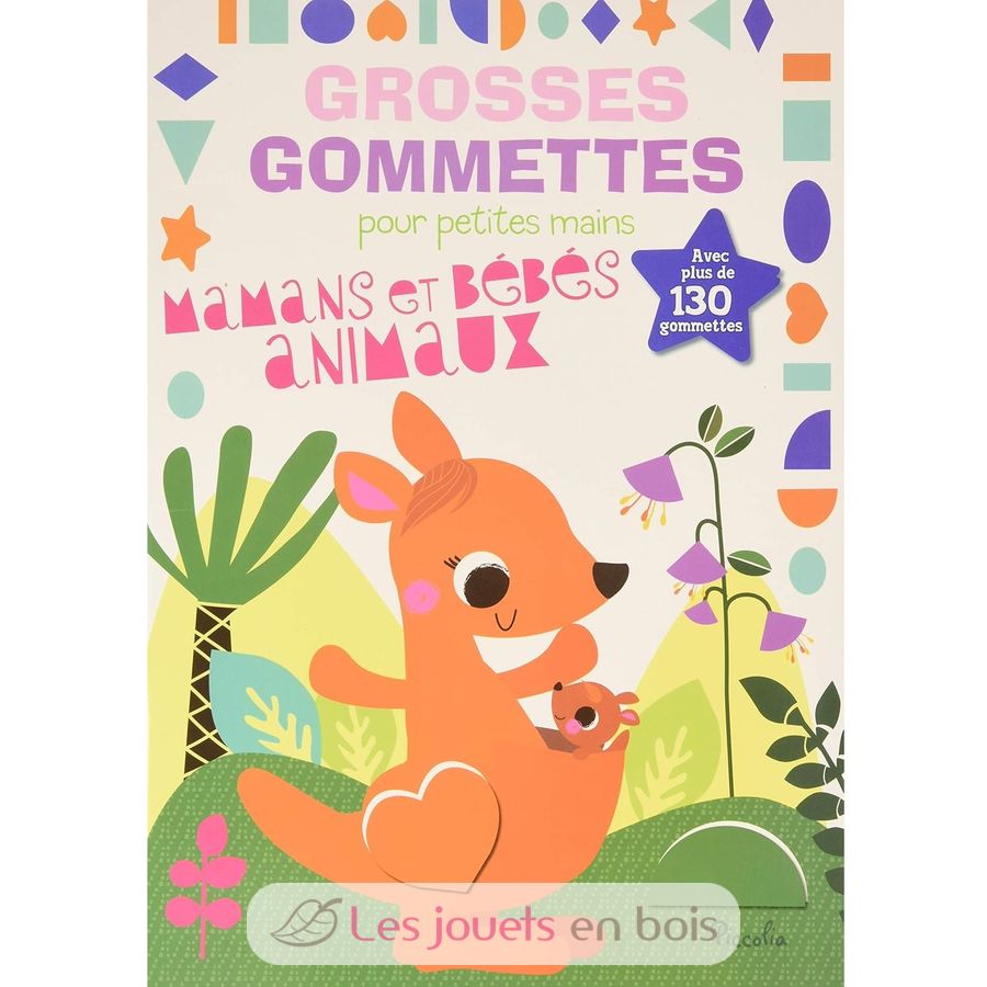 130 grandes gommettes pour compléter 24 pages illustrées sur le thème de animaux Mamans et bébés.