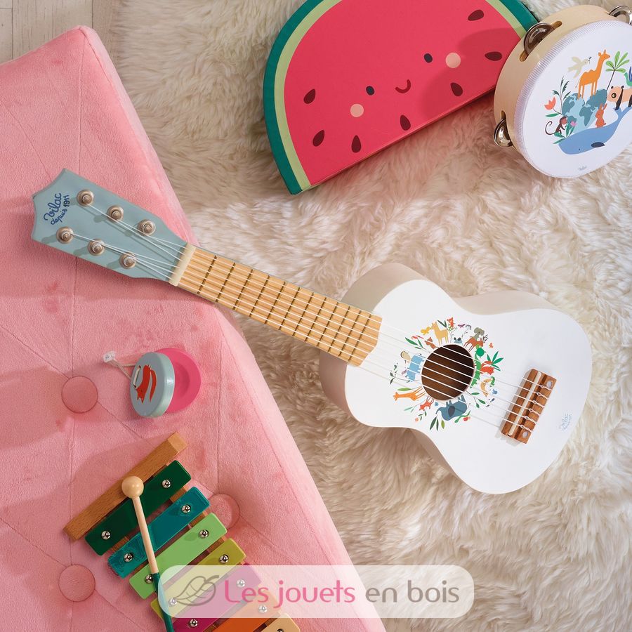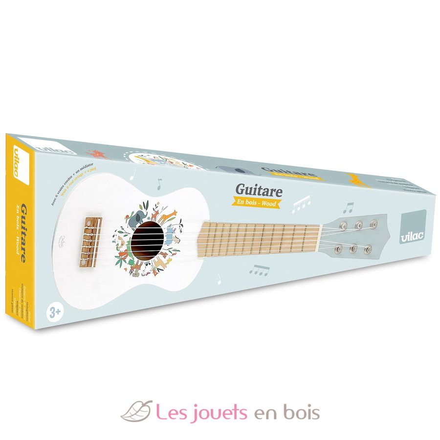 Guitare animaux du monde Sarah Betz, une guitare en bois pour enfant de la marque Vilac. Référence 7109.