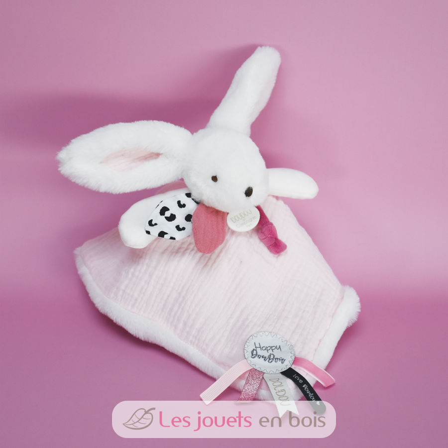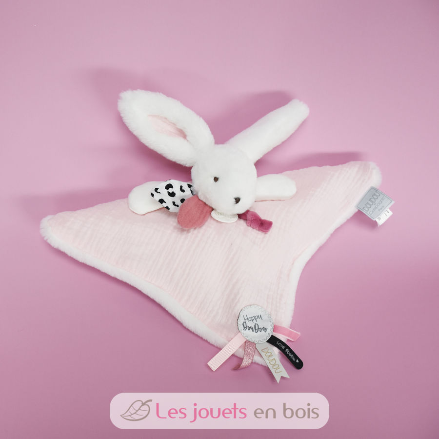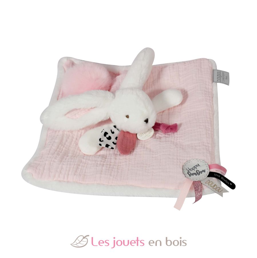 Lapin Doudou Pompon Rose de la gamme Happy Blush, un doudou de la marque Doudou et Compagnie qui accompagnera bébé partout !