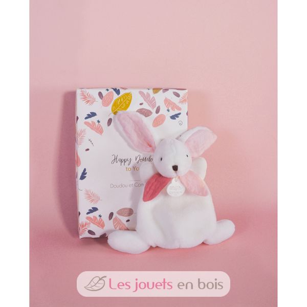 Mini Doudou Lapin rose de la gamme Happy Wild, un doudou de la marque Doudou et Compagnie qui accompagnera bébé partout !