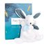 Ce petit doudou lapin est extrêmement doux et tendre. Adorable avec son pompon couleur bleu, ainsi que ses touches de lange aux harmonies aqua, il est blotti dans une superbe boîte cadeau, tel un écrin magique. Un doudou à adopter de tout urgence !