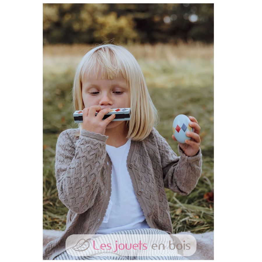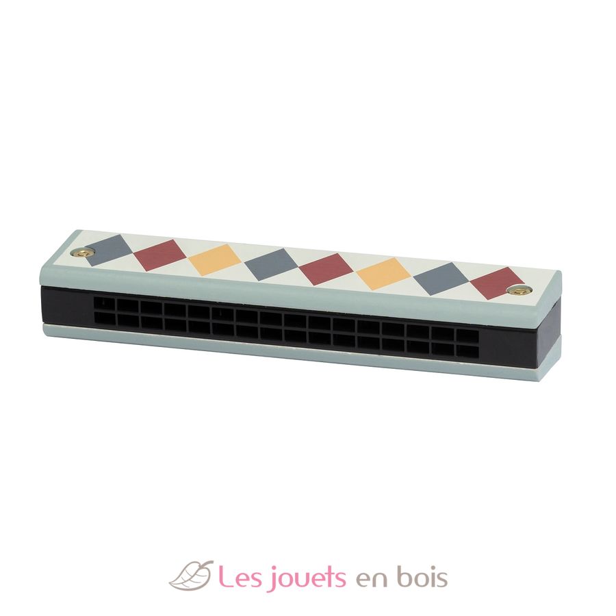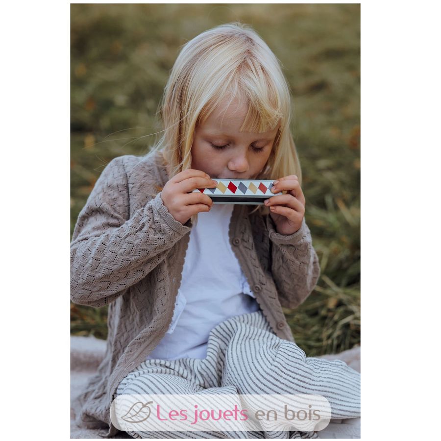 Laissez votre enfant explorer le monde de la musique avec l'harmonica en bois de la collection de jouets musicaux Arlequin de chez Mamamemo.