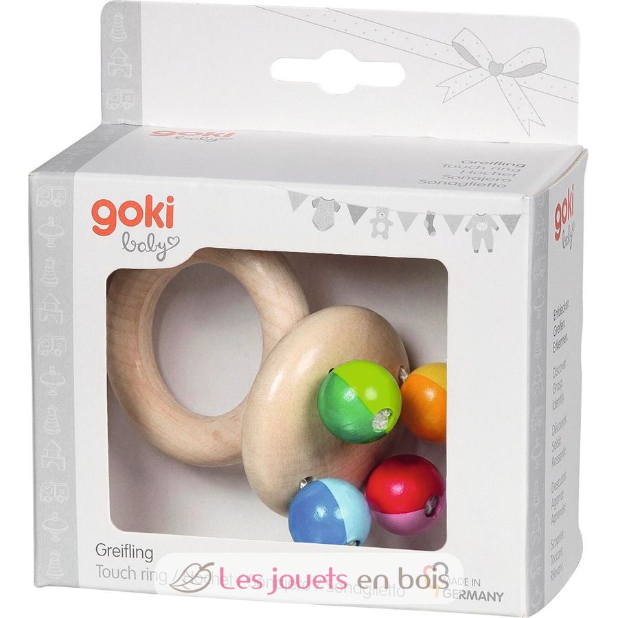 Hochet arc-en-ciel, un hochet en bois fabriqué en Allemagne par Goki. Référence 65350.