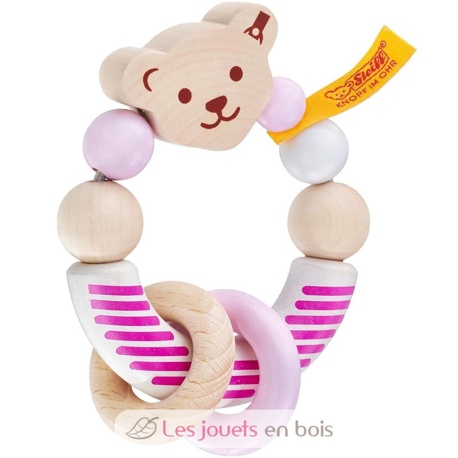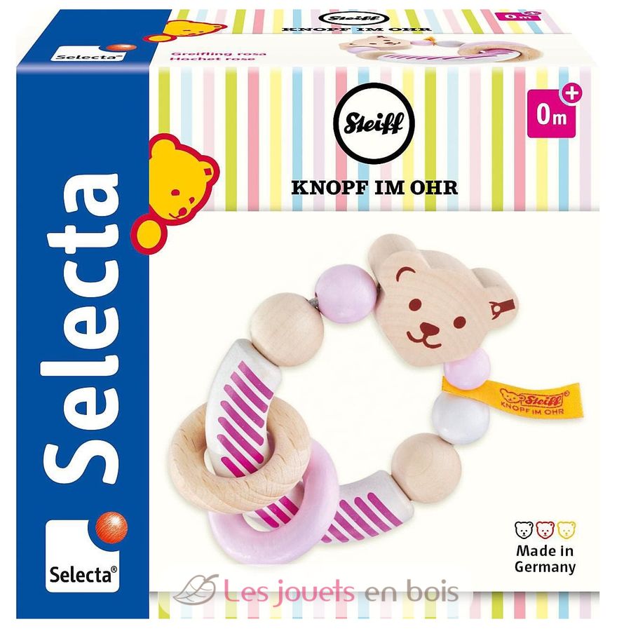 Hochet Ours Steiff rose, un jouet de préhension fabriqué en Allemagne par la marque Selecta.
