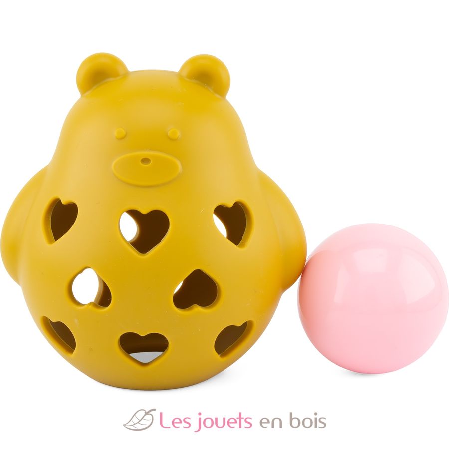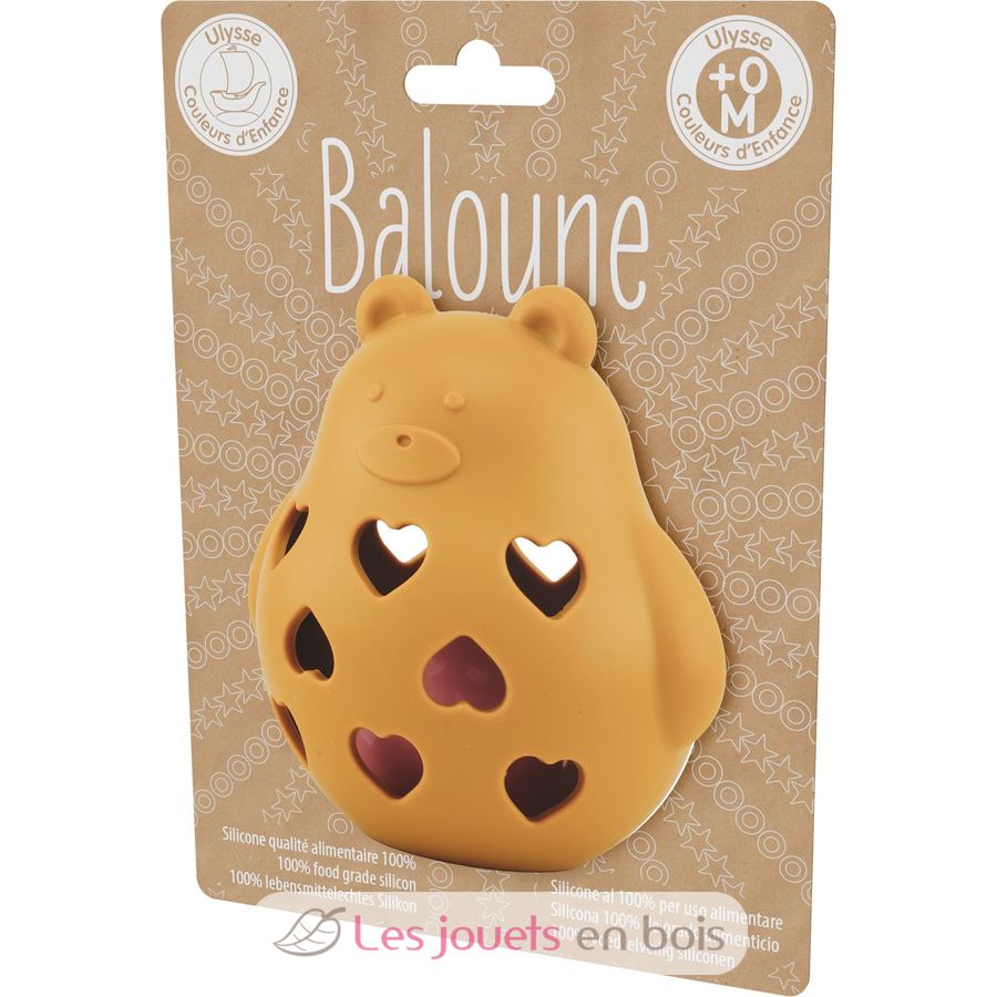 Baloune ourson jaune en silicone, un jouet d'éveil de chez Ulysse.