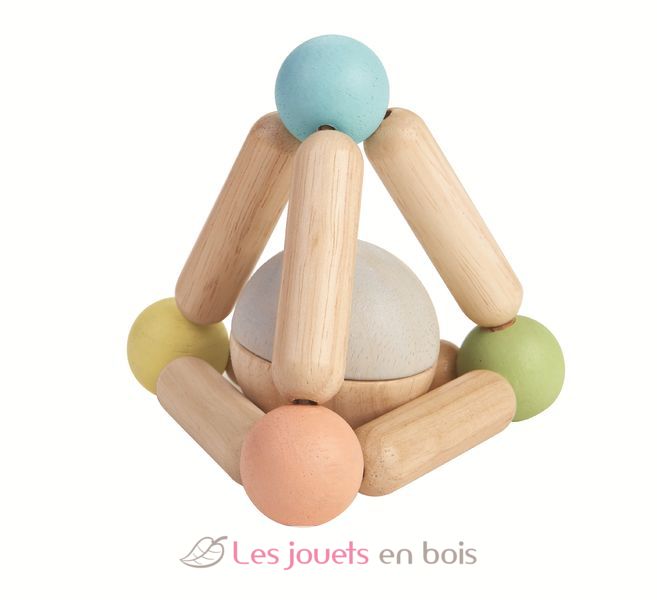 Hochet triangle pastel, un hochet en bois de la marque PlanToys, réf. PT5256.