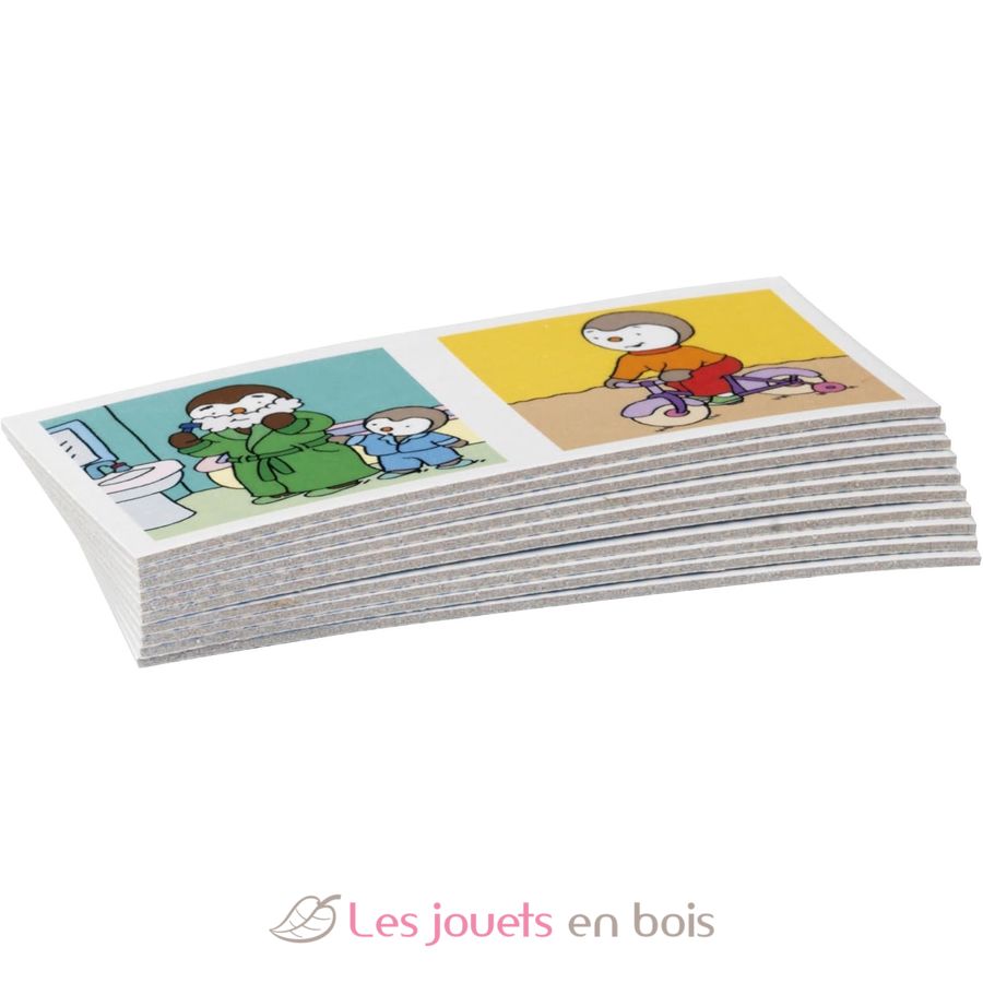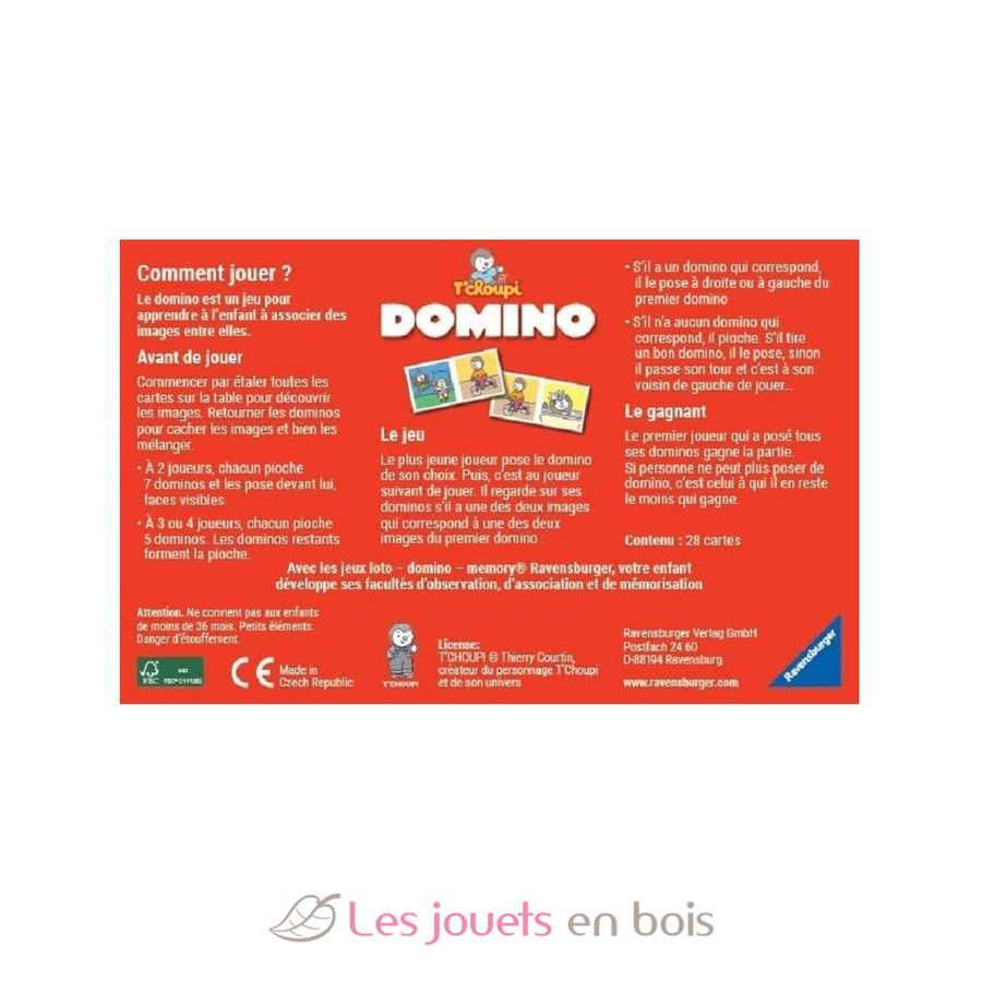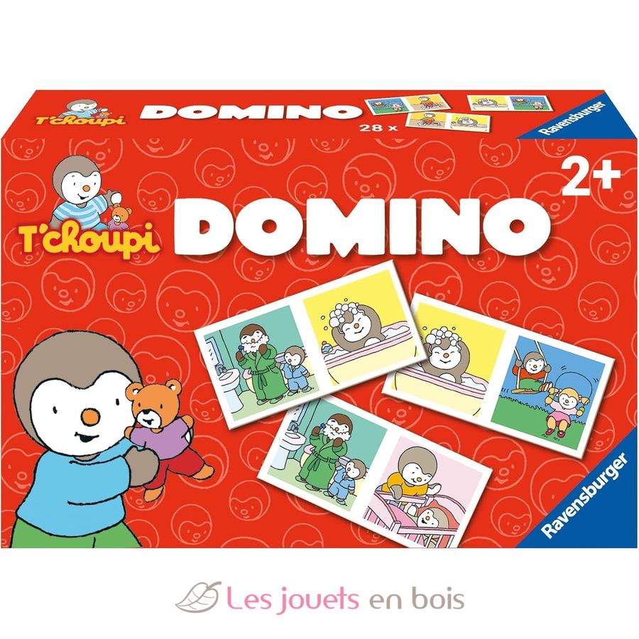 Ce jeu se compose de 28 dominos en bois certifié FSC représentant votre héros T'choupi.