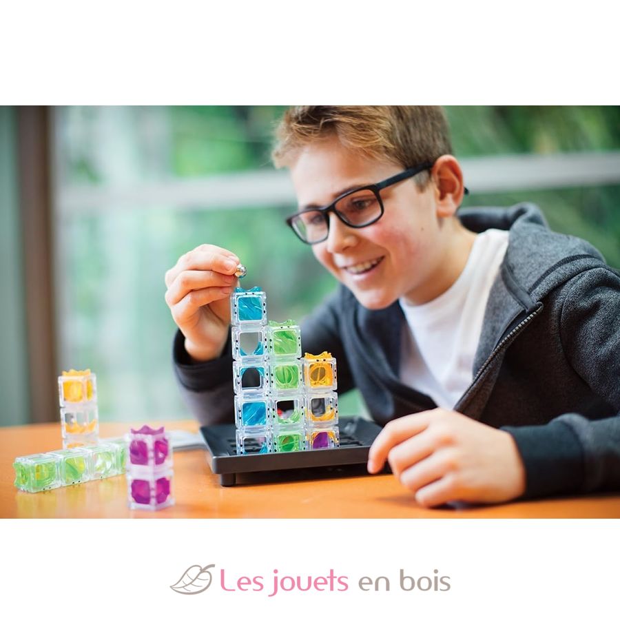 Vous avez gagné ! Les tours translucides peuvent être disposées pour créer diverses structures visuellement stimulantes mais, pour chaque défi, vous devrez aussi réfléchir soigneusement et agencer un chemin qui mène votre bille à sa cible. Soixante défis, avec différents niveaux de difficulté, pour de nombreuses heures de construction créative et de remue-méninges ! Après avoir réussi tous les défis, amusez-vous à construire vos propres labyrinthes de billes et à créer vos propres défis !