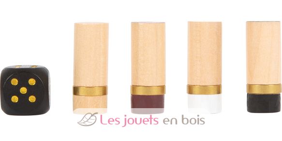 Le plateau de jeu imprimé avec le jeu des petits chevaux d'un côté et avec le jeu de des échelles de l'autre côté ne garantit pas seulement un double plaisir ! Il est également divisé en deux et peut donc être rangé de manière peu encombrante ! Des aimants intégrés garantissent que les deux moitiés du plateau restent fermement ensemble.