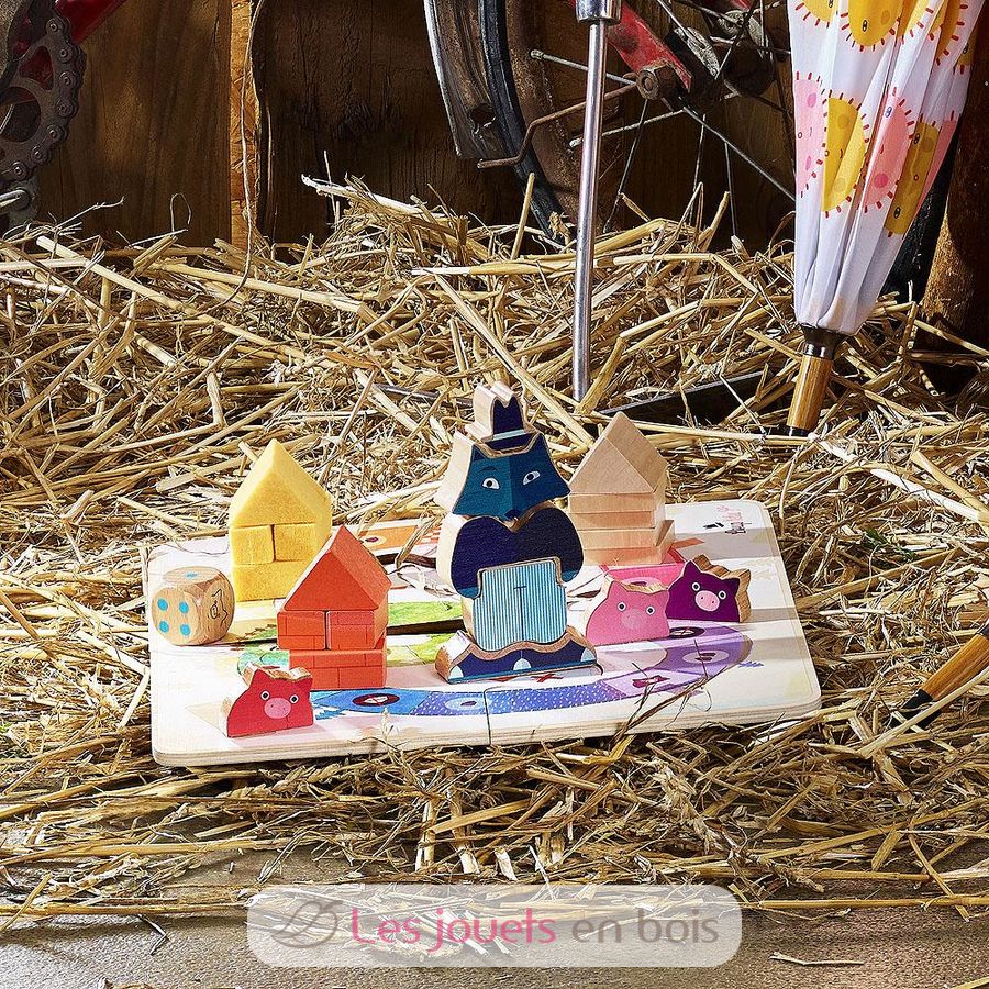Avant que le loup ne s'habille, il faudra construire rapidement la maison en paille, puis en bois et enfin celle en brique. Mais attention, si le loup arrive, il soufflera sur les constructions !