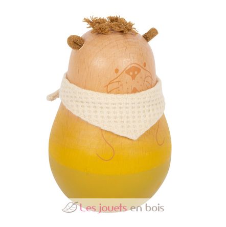 Le mélange attrayant de matériaux en bois massif, de couleurs modernes et de détails en coton fait également de ce jouet culbuto un bel objet de décoration dans la chambre d'enfant. L'aspect naturel est souligné par les veines du bois qui transparaissent sous la lasure et par le doux dégradé de couleurs.