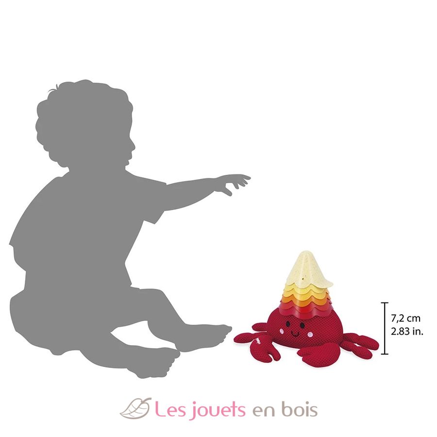 Une éponge de bain bernard-l’hermite et sa coquille en 6 coupelles, un jouet idéal pour le bain des petits dès 10 mois.