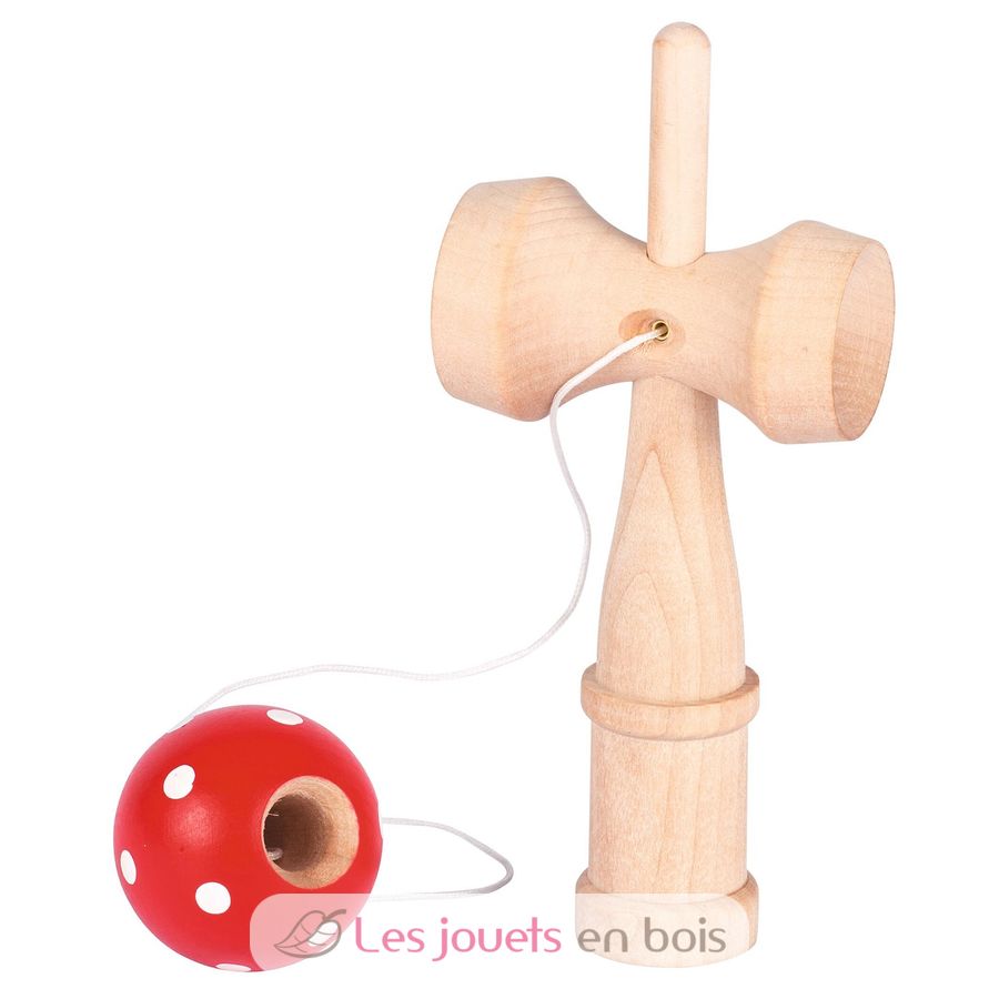 Kendama rouge, un jeu d'adresse en bois de la marque Goki.
