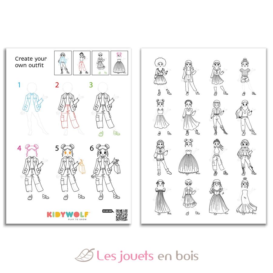 Avec Kidydraw Pro Fashion, les enfants deviennent de vrais stylistes en herbe. Grâce à un ingénieux système de décalques, ils associent silhouettes, tenues, accessoires et motifs à l’infini, avec plus de 1000 combinaisons possibles, comme dans un véritable atelier de mode !
