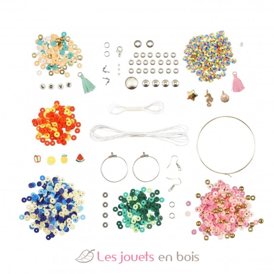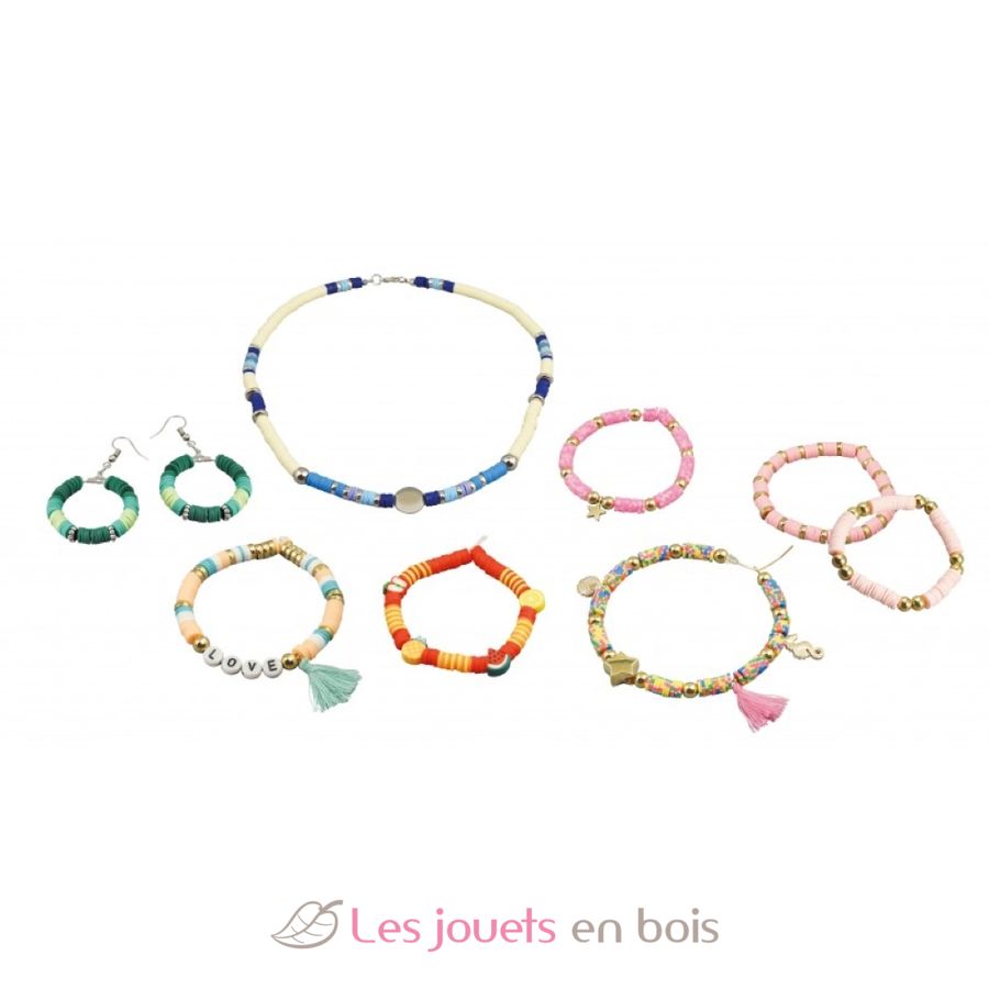 Avec ce coffret, réalise 8 bijoux colorés à partir de perles heishi, perles dorées et breloques. Crée 1 collier, 6 bracelets et une paire de boucles d’oreilles. Tu pourras ensuite porter tes jolies créations ou les offrir pour un cadeau original !