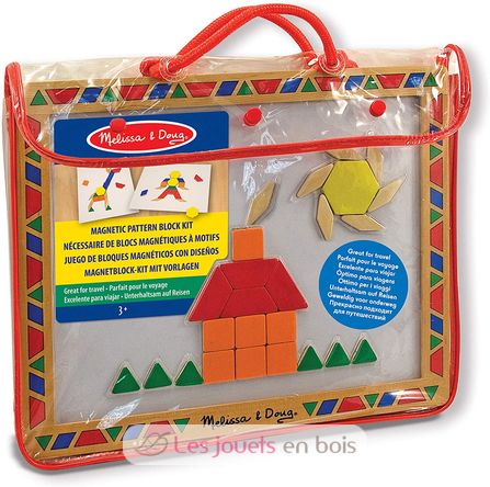 Conçu pour des heures de jeu et idéal pour les voyages, ce tableau magnétique en bois comprend 120 aimants géométriques colorés. Les plus jeunes apprécieront d'utiliser les formes pour reproduire les 12 images géométriques incluses, tandis que les enfants plus âgés s'amuseront à créer des motifs en mosaïque et des images directement sur le tableau magnétique. Cet ensemble est emballé dans une mallette de transport pratique en plastique avec des poignées robustes.