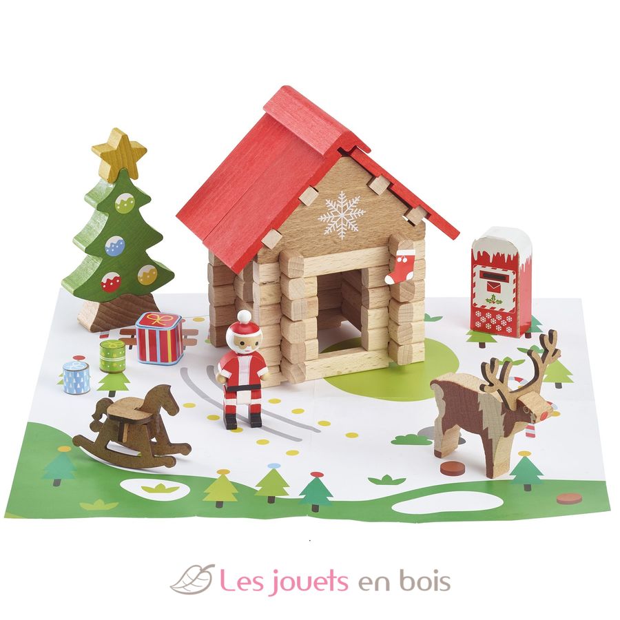 Redécouvez le chalet traditionnel qui a accompagné des générations d'enfants en version de Noël. Un jeu de construction en bois naturel et teinté de 60 pièces, avec un tapis de jeu, des accessoires et une notice de montage pour construire l'univers du Père Noël.