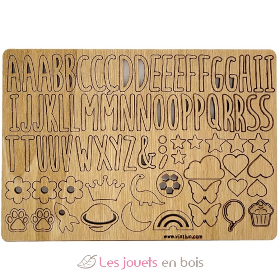 Fabriquée artisanalement dans un atelier de découpe de bois en Espagne, cette petite lampe à poser se personnalise facilement grâce aux lettres et symboles en bois qui l'accompagnent et apporte une touche délicate à la décoration d'une chambre d'enfant. Le bois de peuplier utilisé pour sa fabrication provient de forêt gérées durablement.
