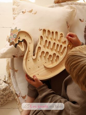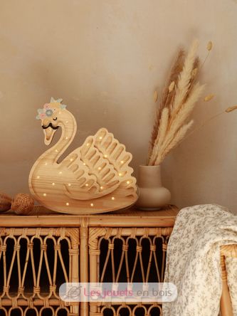 Adorable lampe veilleuse en bois pour enfants, en forme de cygne.
