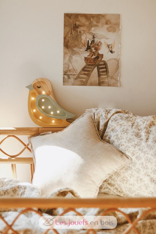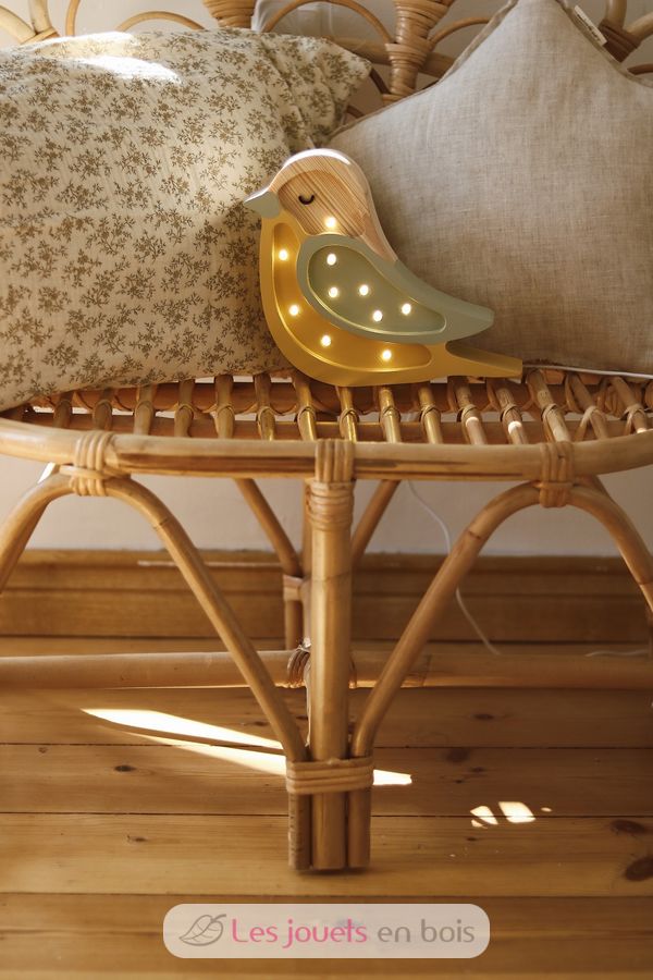 Adorable lampe veilleuse en bois pour enfants, en forme d'oiseau.