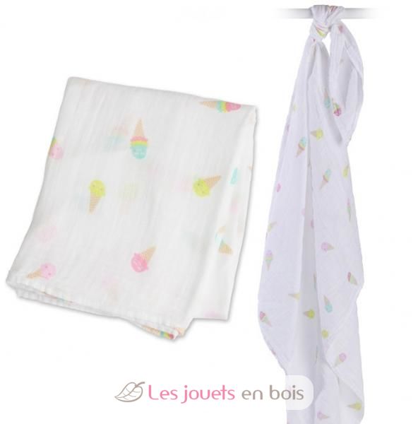 Maxi lange en mousseline de coton - Crème glacée 120 x 120 cm, de la marque Lulujo, réf 121-000-025.