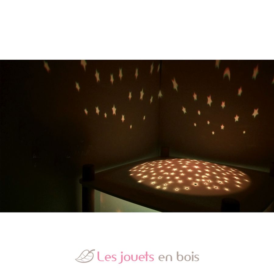 Lorsque vous allumez la lanterne, un décor s'anime devant les yeux émerveillés de votre enfant, plongeant sa chambre dans une ambiance tamisée. Avec l'option projecteur d'étoiles, sa chambre sera parsemée d'un ciel étoilé. Une douce musique, dont le volume est ajustable, pourra l'accompagner dans son sommeil : soit l'une des 4 berceuses pré-enregistrées, soit sa comptine ou musique préférée diffusée depuis votre smartphone ou tablette (fonction de connexion sans fil). Enfin, en cas de cauchemar ou de terreurs nocturnes, la lanterne se rallume automatiquement pour apaiser votre enfant grâce à son détecteur de pleurs.