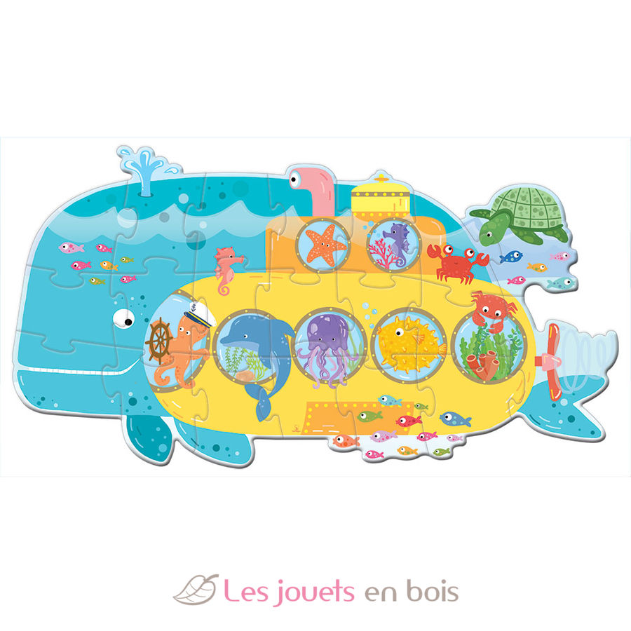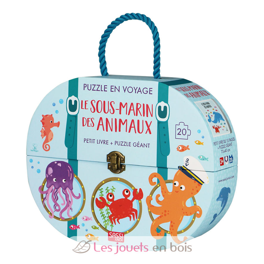 Au fond de la mer, un sous-marin transporte plein de petits animaux sympathiques. Lis le livre, joue avec le puzzle géant (75 x 40 cm - 20 pièces en carton) et emmène-les partout avec toi grâce à la mallette de transport. A partir de 3 ans.