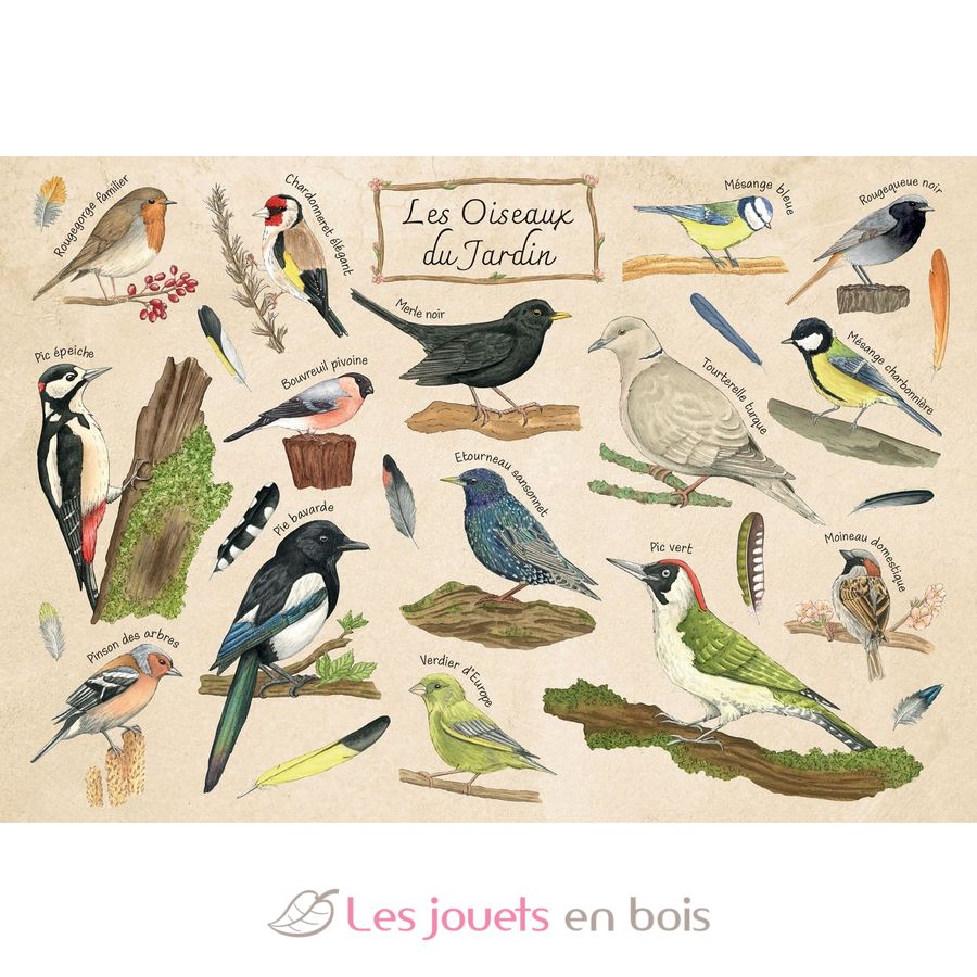 Les oiseaux du jardin de Miss Fauvine - Puzzle 100 pièces.