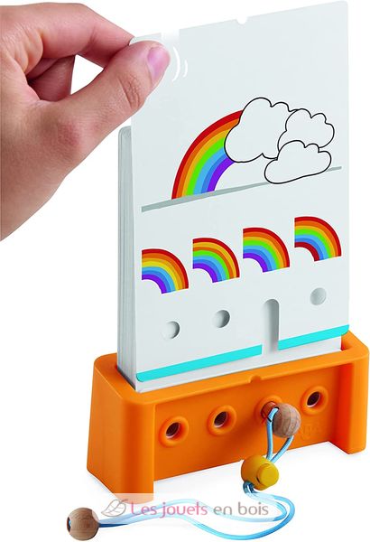 Les kits de puzzles Logic Case sont colorés, stimulants et variés. Le but du jeu est de déchiffrer et résoudre diverses énigmes. À l’aide du stylet en bois, l’enfant peut vérifier lui-même s’il a trouvé la bonne solution : est-il possible de retirer la carte ou pas ?