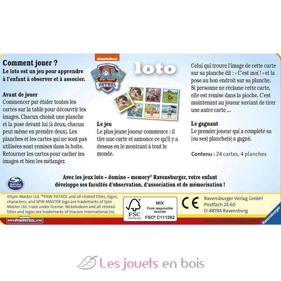 Loto Pat'Patrouille, un jeu de la marque Ravensburger.