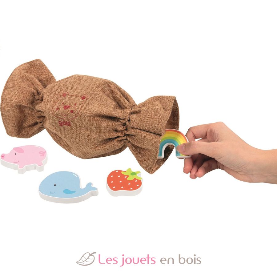 S'il faut réussir à compléter sa grille de loto avec les motifs identiques comme dans sa version classique, la pièce correspondant au motif de la carte se trouve à l'intérieur du sac. Pour retrouver la pièce il faut y plonger sa main et la reconnaître uniquement au toucher.