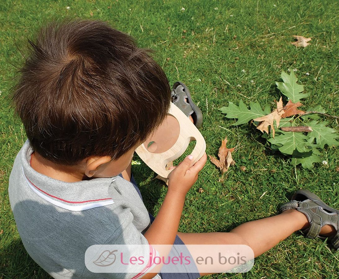 Cette loupe pour enfant est conçue avec un cadre en bois d'hévéa et des poignées pour que votre enfant puisse la tenir facilement et s'en servir en toute autonomie afin d'observer de petits objets, des insectes, des fleurs...