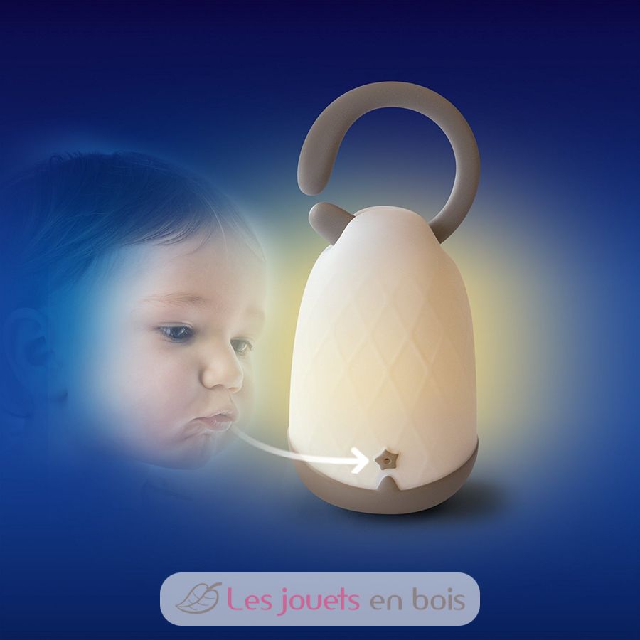 Avec cette lanterne Lumiblo, fini la peur du noir au moment de s'endormir. La veilleuse nomade lanterne à souffle LumiBlo de la marque Pabobo est une petite lanterne magique qui s'allume et s'éteint d'un simple souffle. Souffler pour l'allumer. Plus on souffle, plus elle brille. Elle s'éteint aussi d'un souffle!