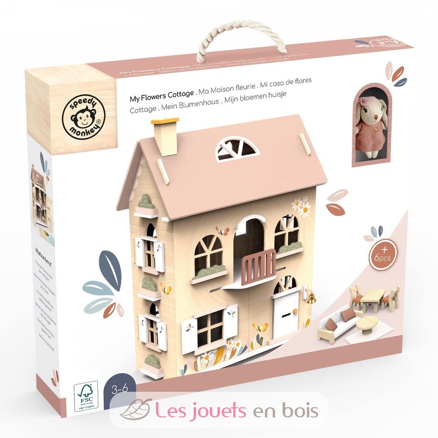 Ma maison de poupée fleurie, une maison de poupées en bois certifié FSC de la marque Speedy Monkey.
