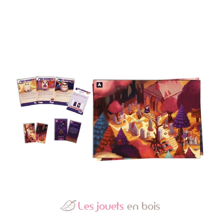 Contenu : 9 plateaux Lieu, 213 cartes narratives, 32 cartes événements, 11 cartes Artefact, 2 pions en bois, 16 jetons en bois, 2 livrets de règles.