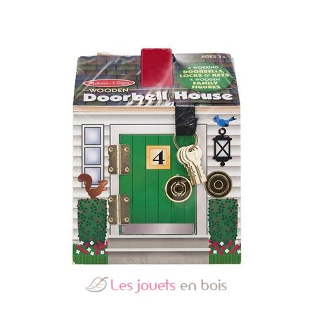Maison en bois à verrous et sonnettes de la marque Melissa & Doug, idéale pour développer la motricité des enfants de 3 à 5 ans.