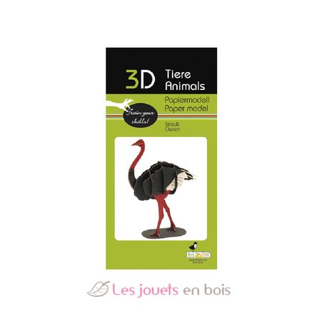 Maquette 3D Autruche. Dimensions une fois assemblée : 10 x 12,5 x 3,5 cm.