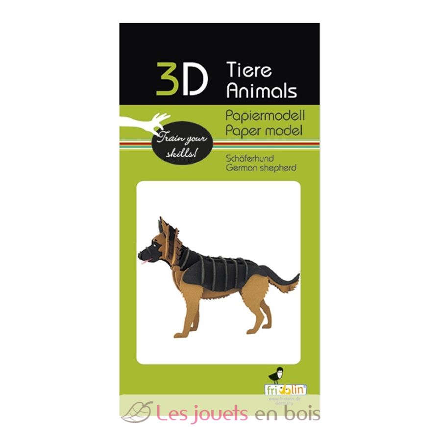 Maquette 3D chien Berger allemand. Dimensions une fois assemblée : 3 x 7,5 x 12 cm.