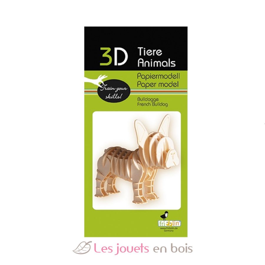 Maquette 3D Bouledogue français. Dimensions une fois assemblée : 9 x 8,5 x 6 cm.