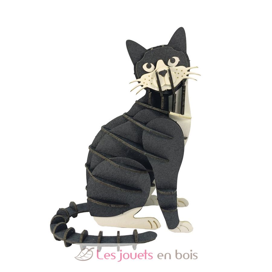 Maquette 3D Chat noir et blanc. Dimensions une fois assemblée : 6 × 8,5 × 4,5 cm.