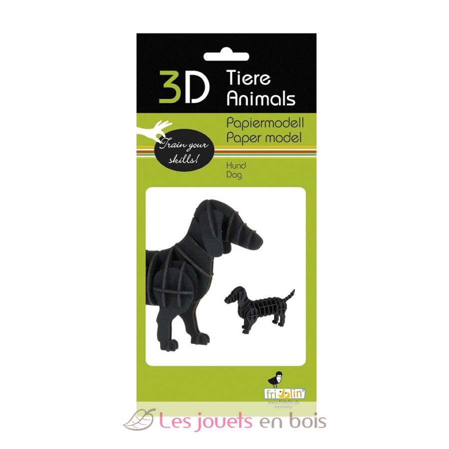 Maquette 3D Teckel. Dimensions une fois assemblée : 11 x 6 x 3 cm.