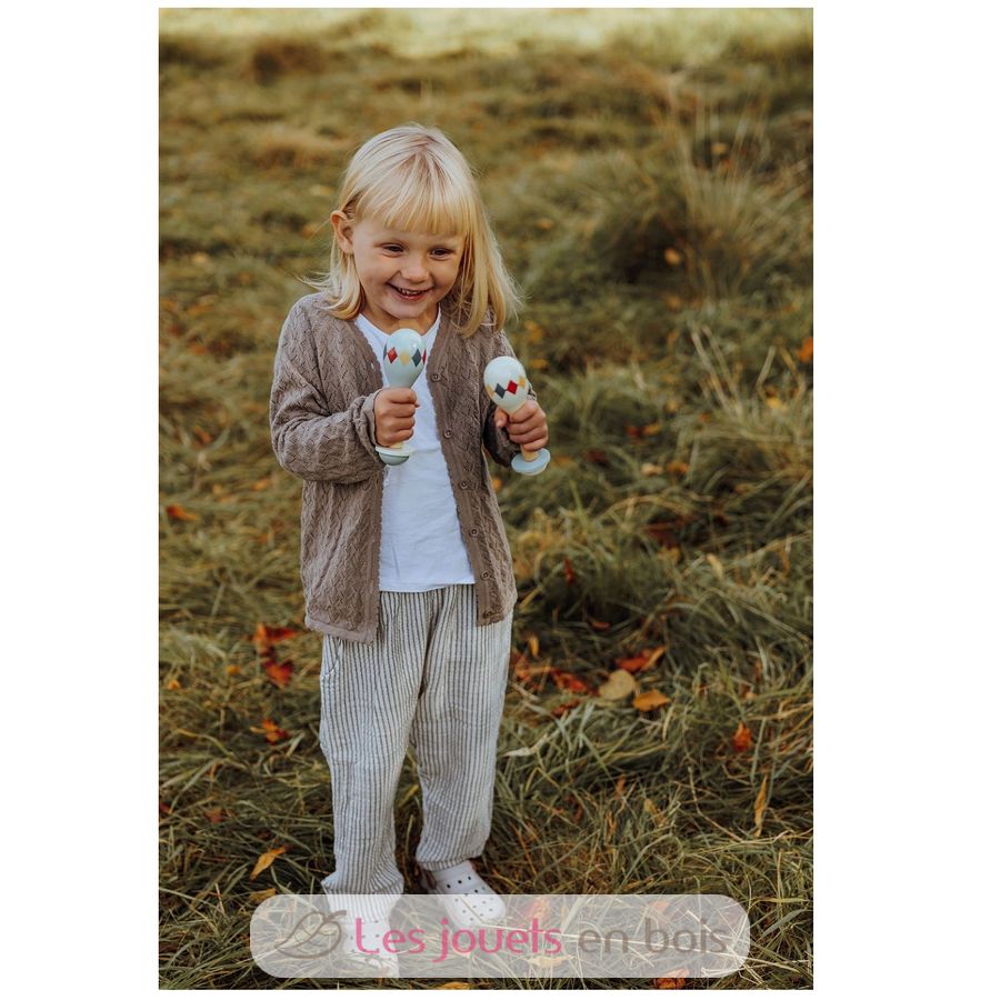 Initiez votre enfant à la musique avec les maracas de la collection de jouets musicaux Arlequin de chez Mamamemo.
