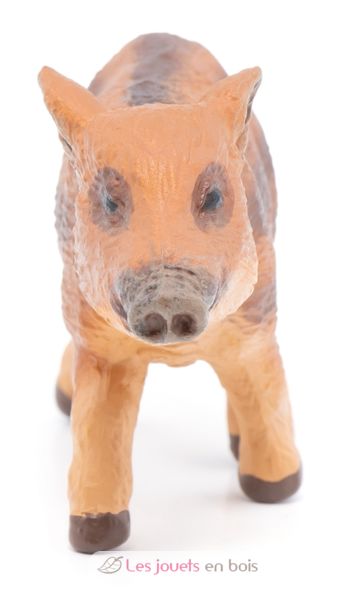 Le marcassin Papo est le petit de la laie et du sanglier. Contrairement aux adultes, il possède un pelage avec des rayures foncées, précédant le stade de bête rousse vers les 6 mois lorsqu’il devient plus autonome. Il nait parfaitement dégourdi, avec les yeux ouverts et content de pouvoir suivre sa maman dans ses déplacements dès la fin de leur première semaine.